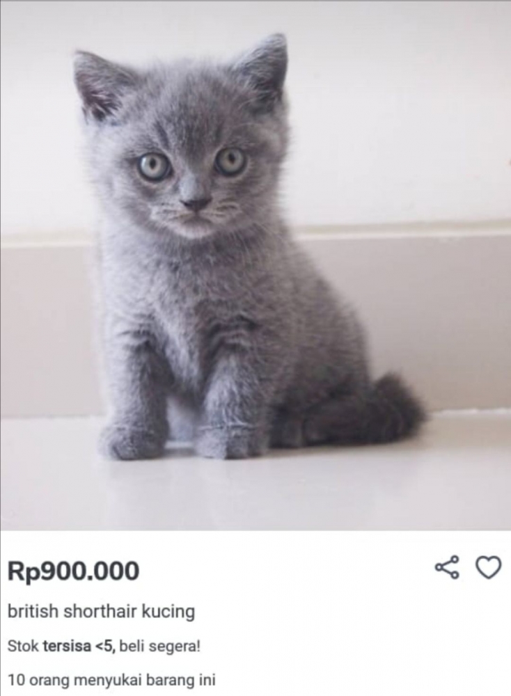 Masing-masing saya lepas dengan harga Rp 400000 nett atau barter dengan makanan kucing 20 kg merk apapun yg paling murah jg gpp. Haloo Para Pecinta Kucing Gembul nan cantik untuk para Cat Lover Kota Soto Kota Pudak dan Kota Wali kami dari Tempat Adopsi Kucing Terpercaya Albells vat House saat ini menyediakan pengiriman ke kota Anda jenis kucing yang kami jual sebagian besar Kitten anakan usia kecil seperti Persia Medium Flat Peak pesek Himalaya Ragdoll Munchkin cebol BSH British Short Hait Sphnyx. Bagi anda pecinta pet animal tentu tidak asing lagi akan satu jenis hewan ini bahkan setiap kalangan pecinta animal sangat memfavoritkan hewan ini dialah KUCING.